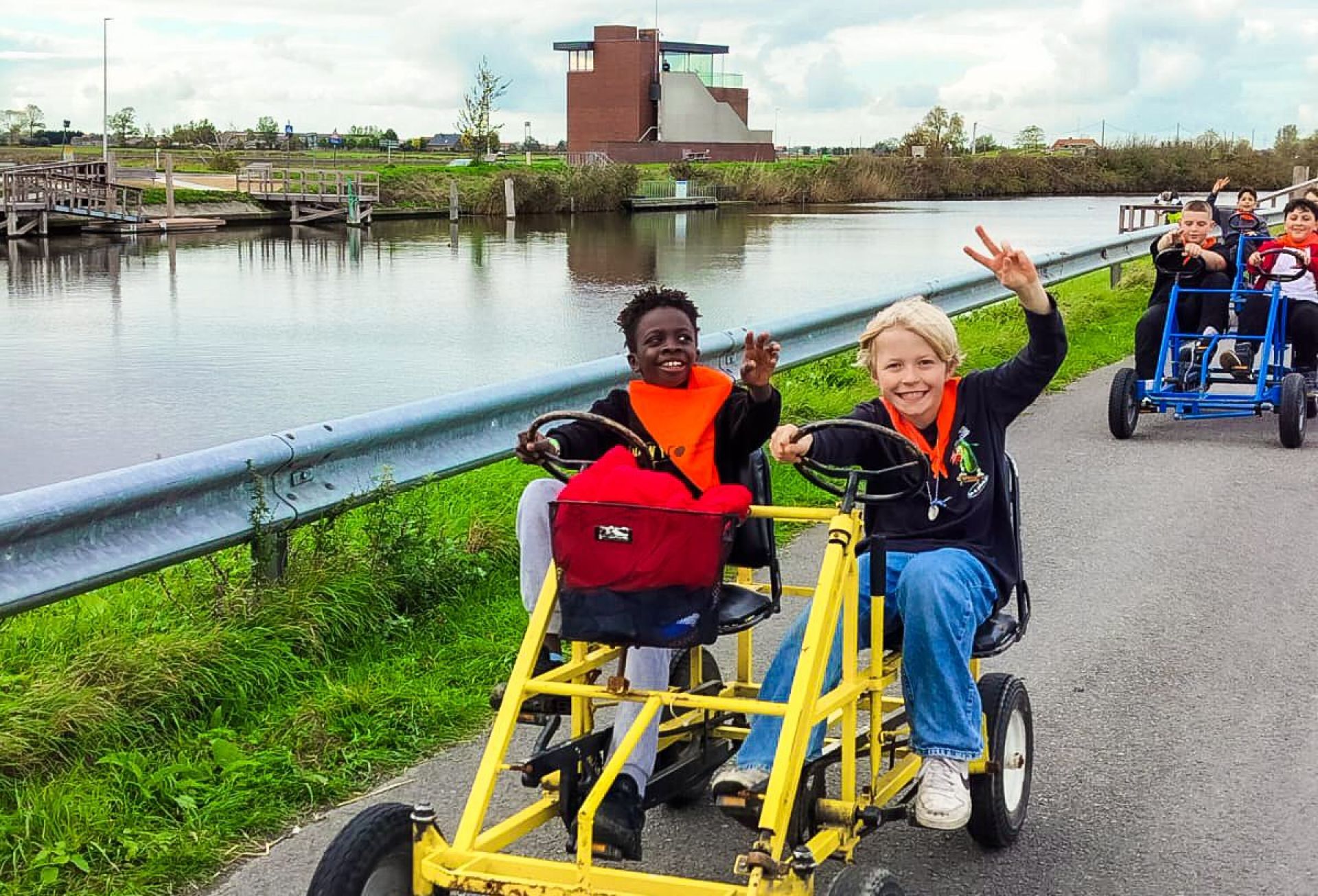 Natuurlijk was er ook tijd voor actie en plezier! De leerlingen mochten varen op een vlot, zich uitleven met go-carts langs de dijk en samen uitdagingen aangaan in teamspelletjes en strandactiviteiten.